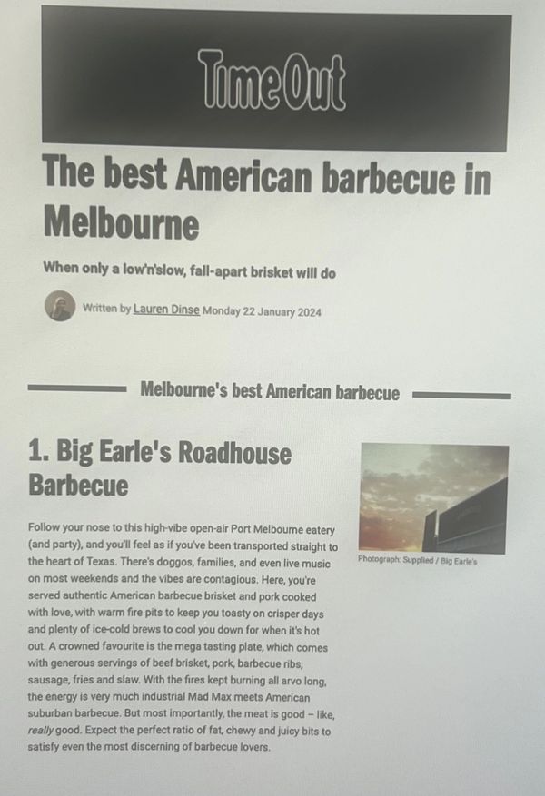 Whether you’re chasing a low-key lunch, a rowdy group night or a family feed where the kids can roam, Big Earle’s delivers the whole package: smoky, saucy barbecue; warm service; and a setting that feels part Texas roadhouse, part Melbourne backyard party. Wanderlog